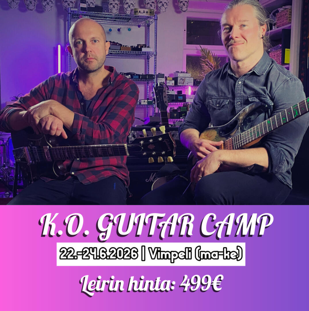 Tule mukaan kesän 2026 inspiroivalle kitaraleirille Vimpeliin!Järjestämme Kosonen & Olkkonen Guitar Campin kesällä 22.–24. kesäkuuta 2026 Vimpelissä, Lakis Areenalla. Leiri tarjoaa intensiivisen mutta rennon ympäristön kehittää kitaransoittoasi, syventyä tekniikkaan ja luovuuteen sekä saada uusia näkökulmia omaan soittoosi.Opetuksesta vastaavat Mikko Kosonen ja Pexi Olkkonen, jotka tunnetaan vahvasta osaamisestaan sekä kannustavasta ja asiantuntevasta opetustyylistään. Leiri sopii genrestä ja lähtötasosta riippumatta kaikille, jotka haluavat kehittyä ja inspiroitua.Kolmen päivän aikana käsitellään muun muassa:-kitaransoiton tekniikkaa ja sen kehittämistä-komppausta ja groovea-rytmiikkaa-dynamiikkaa ja fraseerausta-tehokasta harjoittelua ja soiton ergonomiaaLeirin teemat ja sisällöt tullaan tarkentamaan lähempänä leiriä. Yllä mainitut aiheet ovat esimerkkejä mahdollisista kokonaisuuksista.Majoitus ja ruokailut:Leirin hintaan kuuluu mökkimajoitus jaetuissa mökeissä. Aikaisempiin vuosiin perustuen vuokralla on ollut 2-3 tilavaa mökkiä ja ne ovat aina tulleet tarpeeseen. Voit valita myös majoituksen muualta, mutta se ei vaikuta leirin hintaan.Leirin hintaan ei sisälly lounaat, mutta ne ovat ennakkoon sovitut ja edulliset. Meillä on yhteistyösopimus Vimpelin keskustassa sijaitsevan paikallisen ravintolan kanssa, jossa lounaat järjestetään leiripäivien aikana. Ravintolaan siirrytään omilla kyydeillä tai kimppakyytejä jakaen.Leirin hintaan sisältyy:-pieni aamupala-iltapäivän välipala-kahvit ja tee päivän aikana- Mikon ja Pexin opetus 3pv aikanaAikataulu:Maanantai: aloitus alustavasti klo 18.00 (rentoa sessiointia ja mahdollisuus laittaa omat soittovehkeet kuntoon)Tiistai: täysi leiripäiväKeskiviikko: leiri päättyy viimeistään klo 17.00Kolmen päivän aikana saat runsaasti harjoitusmateriaalia, henkilökohtaista ohjausta ja konkreettisia työkaluja oman soiton kehittämiseen. Tarkemmat tiedot ohjelmasta ja käytännön järjestelyistä toimitetaan ilmoittautuneille lähempänä leiriä.Osallistujamäärä on rajattu noin 25 henkilöön, jotta jokainen saa yksilöllistä huomiota ja oppimista tukevaa ohjausta.